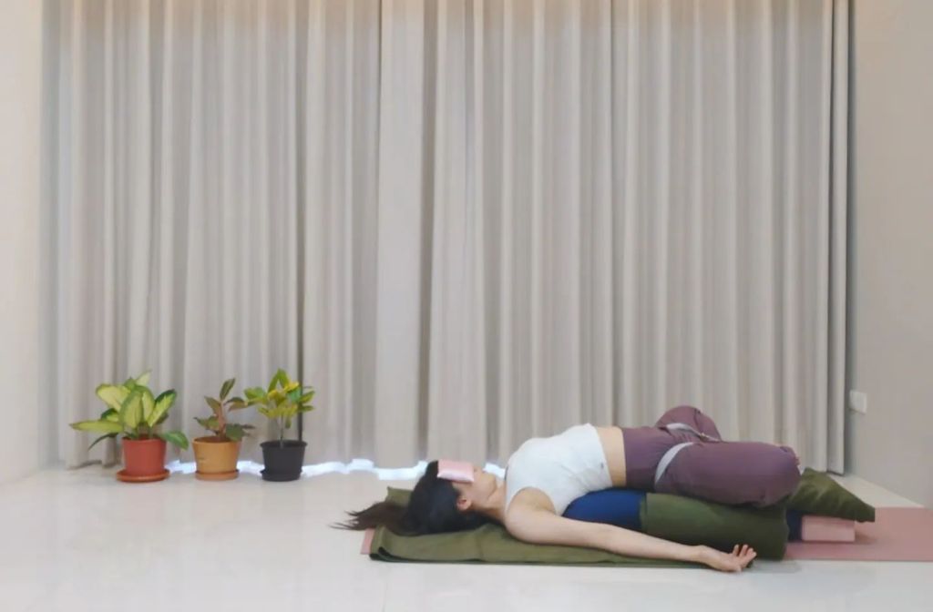 🌱 支撐橋式中的仰臥束角式Supta Baddha Konasana in Setu Bandhasana