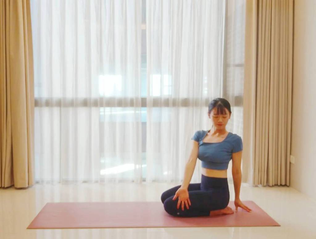 - 暖身:坐姿扭轉、嬰兒式、站姿前彎、下犬式(可以重複幾個回合,生理期時請練習站姿前彎與下犬式有支撐的版本)